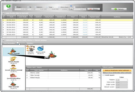 • İlave (add-ons) ve ekstra servis (extra services) hizmetleri girişi,
